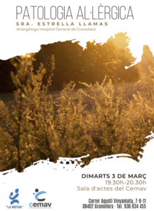 El proper dimarts 3 de març de 19.30 a 20.30h tindrà lloc la conferència sobre Patologia Al·lèrgica de la mà de la doctora Estrella Llamas, Al·lergòloga de l’Hospital General de Granollers.